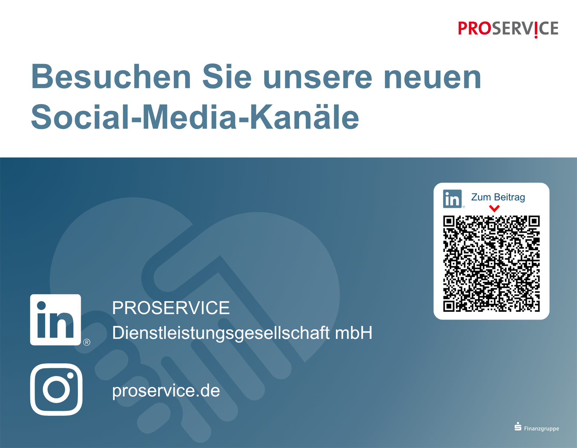 Falls Sie bereits unserem Kanal "PROSERV!CE Dienstleistungsgesellschaft mbH" bei Instagram folgen, können Sie auch dort unser erstes Posting anschauen, liken und teilen.